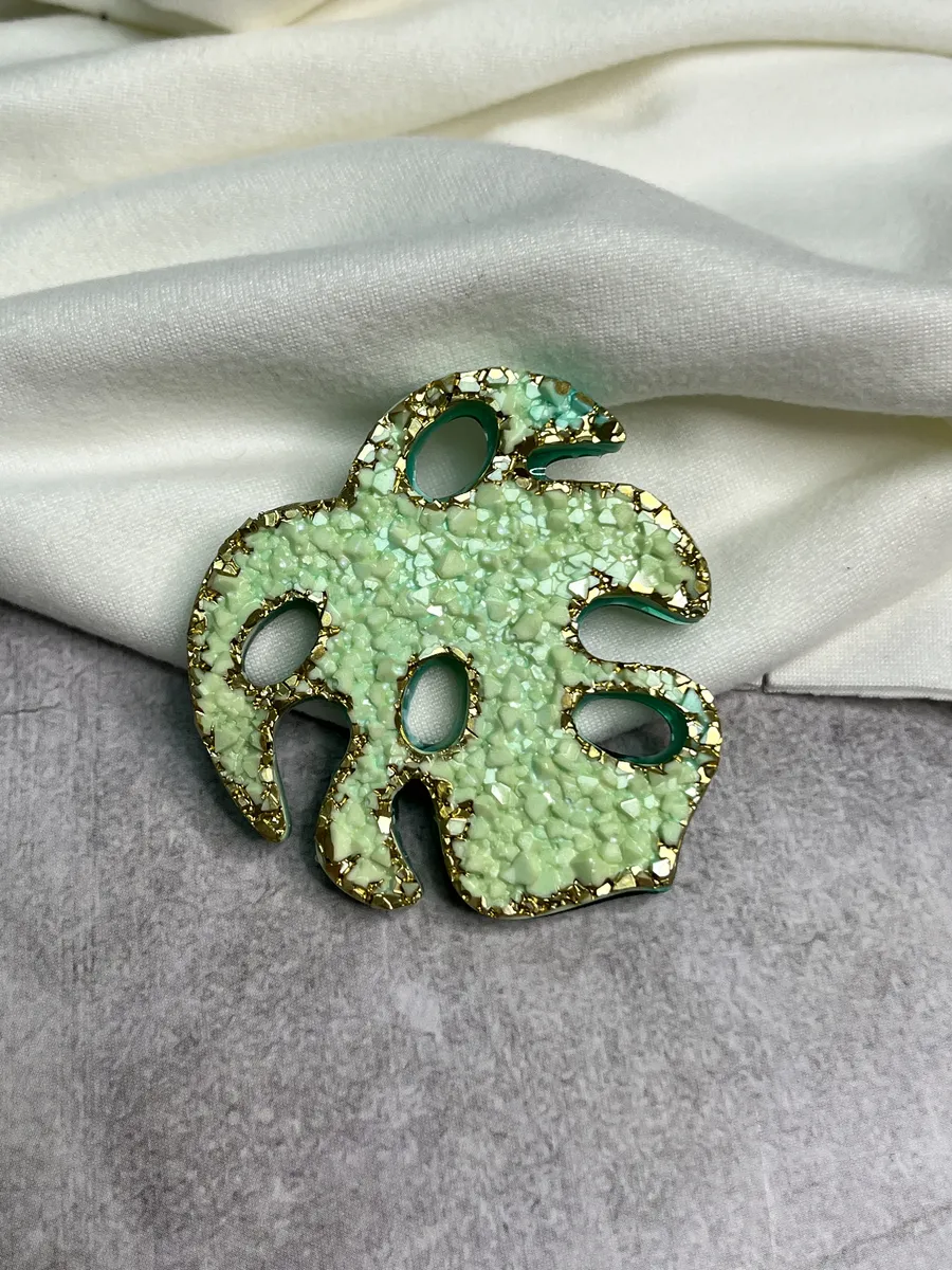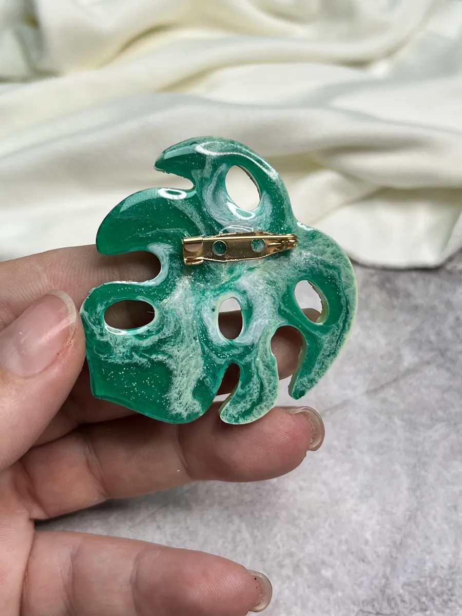 Яркая миниатюрная брошь в виде листа монстеры выполнена из эпоксидной смолы, ручная работа. Брошь крепится с помощью булавки, можно носить на шляпке, сумочке, лацкане. Можно даже прикрепить на резинку для волос, на рюкзак, на карман. Вариантов великое множество, на Ваш вкус.