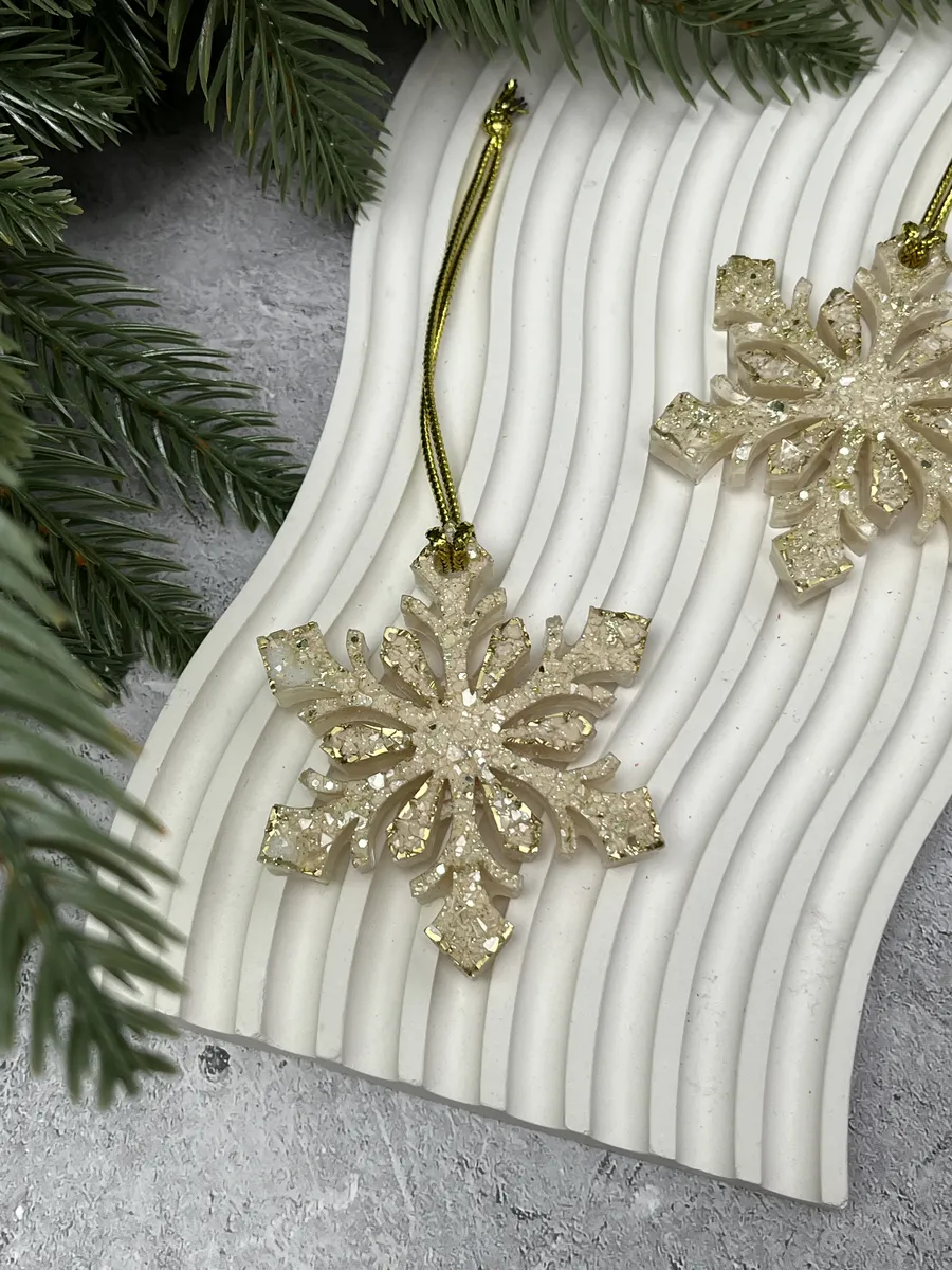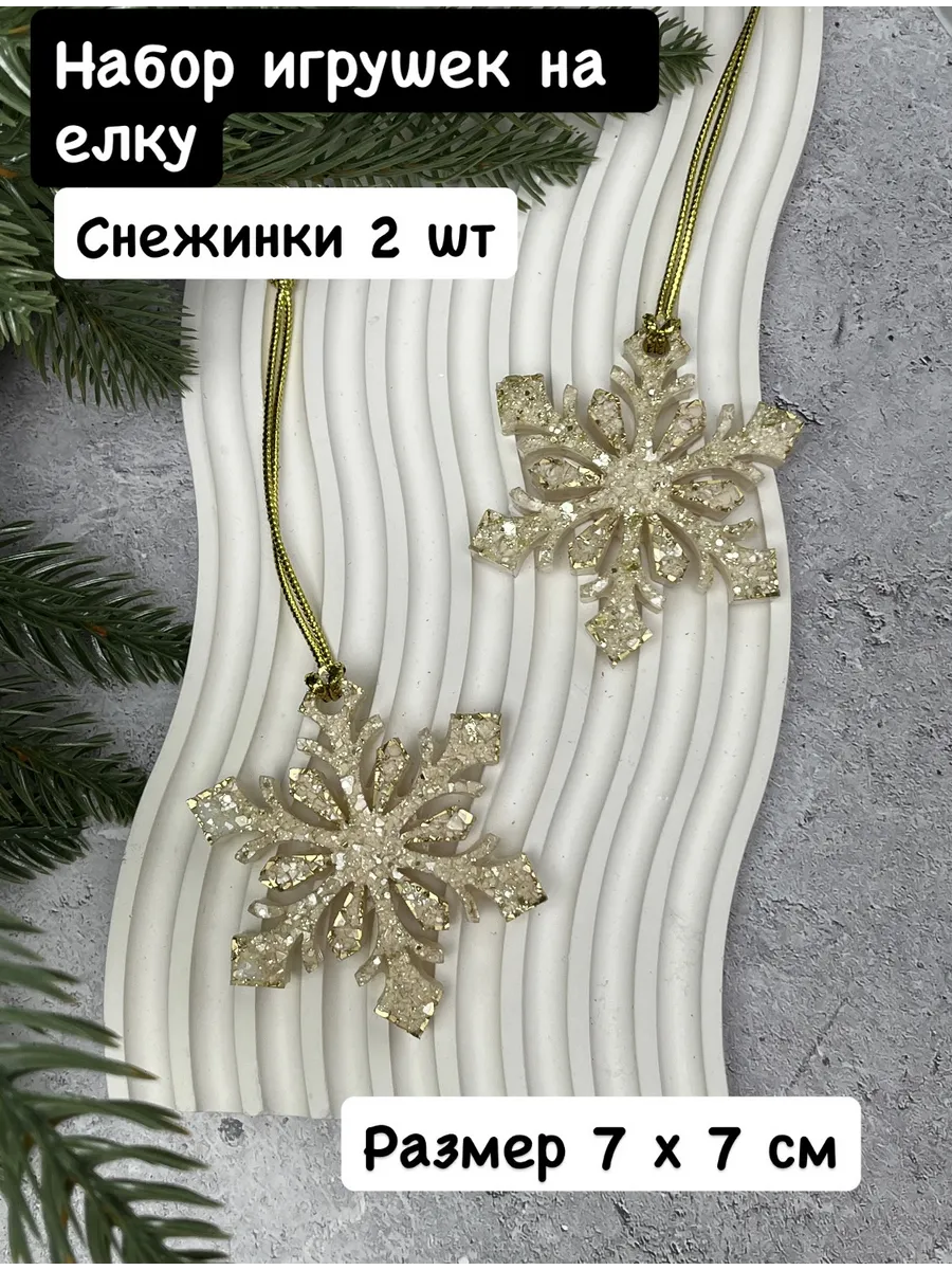 Набор из 2 шт в подарочной упаковке, игрушки на елку из эпоксидной смолы