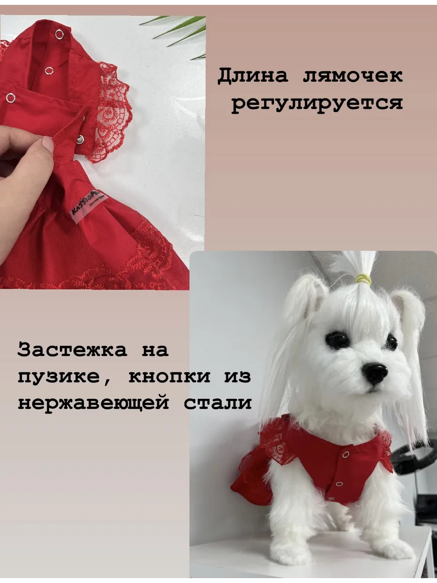 Представьте своего любимого питомца в очаровательном платье от KaSSioPeia_Dog! Это нежное платье, доступное в стильных оттенках, станет настоящим хитом на прогулках. Платье с рюшками и кружевом добавит вашему четвероногому другу очарования и стиля, превратив его в настоящую звезду. Застежка на пузике на кнопки обеспечивают удобную застежку и комфортную посадку по фигуре, длину лямок можно отрегулировать за счет кнопок, а хлопковый матераил подарит комфорт на весь день. По талии добавлены резинки для комфортной посадке по фигуре. Теперь ваш модный пес или кошка будет выглядеть просто сногсшибательно! Одежда для животных KaSSioPeia_Dog - это идеальный способ подчеркнуть индивидуальность вашего любимца и сделать его прогулки еще более яркими.