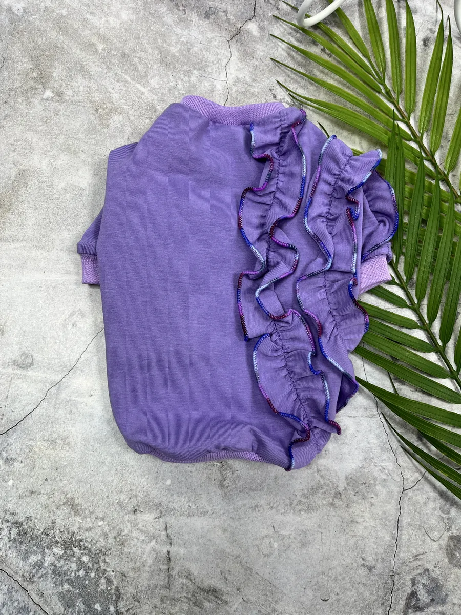 Трикотажная футболка для мелких или средних пород собак и кошек подарит комфорт жарким летним днем, оградив от перегрева, расцветка однотонная с авторским дизайном или отделкой. Футболка с рукавами – без капюшона. По низу и горловине трикотажный манжет, который обеспечивает плотное прилегание к телу. Майка без застежек, одевается через голову. Можно надевать как пыльник и как первый слой под жилетку или комбинезон. Хлопковый состав ткани гипоаллгенен и подойдет для любой шерсти и, или кожи, удобный протестированный крой не будет сковывать движения и не станет помехой для игр. Модель УНИСЕКС, подойдет для любого пола животного. Ткань кулирка 95% хлопок 5% эластан, гипоаллгенен, безопасен для любой шерсти и кожи. При стирке в машине рекомендуем не превышать температуру в 30 градусов. Выбирая одежду для собак и кошек важно учитывать объем шеи, объем груди и длину спинки, размерная сетка указана на последнем фото. Будем рады узнать о Ваших впечатлениях от заказа в отзывах. Приятных покупок! Обязательно ориентируетесь на таблицу размеров для правильного выбора.