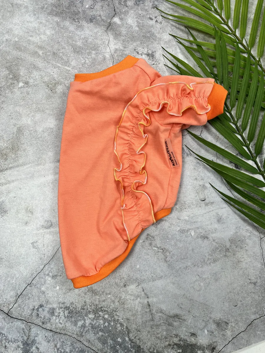 Трикотажная футболка для мелких или средних пород собак и кошек подарит комфорт жарким летним днем, оградив от перегрева, расцветка однотонная с авторским дизайном или отделкой. Футболка с рукавами – без капюшона. По низу и горловине трикотажный манжет, который обеспечивает плотное прилегание к телу. Майка без застежек, одевается через голову. Можно надевать как пыльник и как первый слой под жилетку или комбинезон. Хлопковый состав ткани гипоаллгенен и подойдет для любой шерсти и, или кожи, удобный протестированный крой не будет сковывать движения и не станет помехой для игр. Модель УНИСЕКС, подойдет для любого пола животного. Ткань кулирка 100% хлопок, гипоаллгенен, безопасен для любой шерсти и кожи. При стирке в машине рекомендуем не превышать температуру в 30 градусов. Выбирая одежду для собак и кошек важно учитывать объем шеи, объем груди и длину спинки, размерная сетка указана на последнем фото. Будем рады узнать о Ваших впечатлениях от заказа в отзывах. Приятных покупок! Обязательно ориентируетесь на таблицу размеров для правильного выбора.