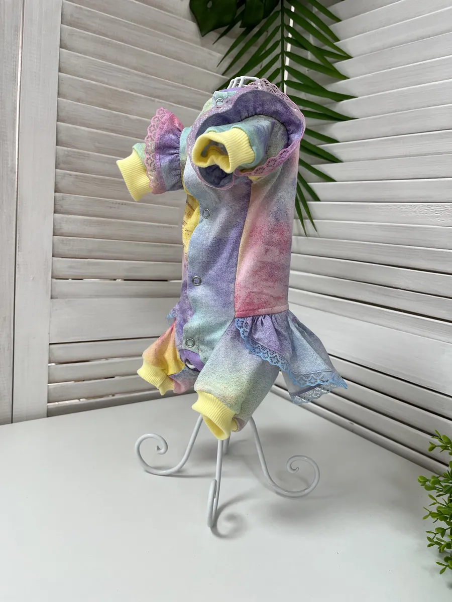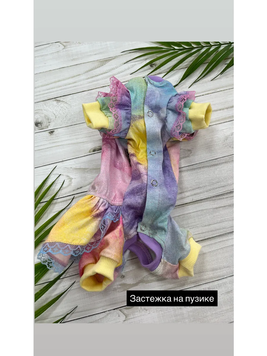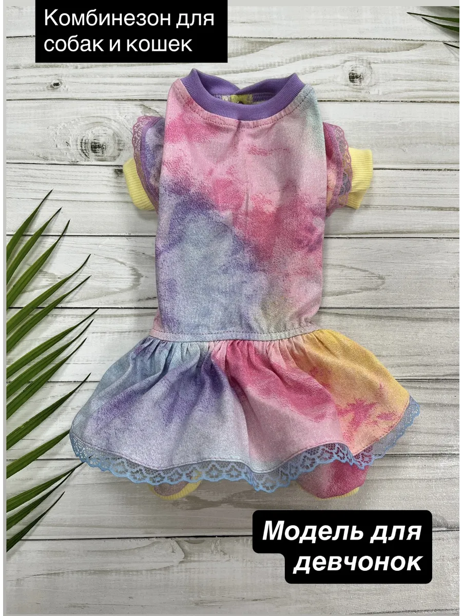 Удобный трикотажный комбинезон для Ваших хвостатых друзей, можно носить как пыльник, как пижамку, как первый слой под теплый комбинезон или жилет. Такой комбинезон станет незаминим для приучения собачки к одежде, в то время когда еще нельзя гулять или в холодное/прохладное время, поможет защитить Вашего питомца от переохлаждения. Комбинезон с закрытым животиком подойдет для девочек. Ткань кулирка 100% хлопок, по низу на передних и задних лапках трикотажный подвяз, по талии резинка для более комфортной посадки по фигуре, на рукавах симпатичные рюшки с кружевом, на талии юбка, застежка на металлические кнопки на животике. Комбинезон раскроен по протестированным лекалам и максимально повторяет строение тела животного, гиппоаллергенный натуральный материал не вызовет раздражения даже на самой чувствительной коже, подойдет для любого вида шерсти. При выборе размера обязательно ориентируйтесь на размерную сетку представленную в галерее товара. Наши комбинезоны прекрасно подходят всем собачкам мелких и средних пород, таким как йорки, мальтезе, той-терьеры, бишон-фризе, чухуа-хуа, джек рассел терьеры, карликовые пудели и другим породам, подходящим по параметрам в размерной сетке. Так же подходят кошкам всех пород, особенно сфинксам. Комбинезон пыльник защитит от грязи, пыли, клещей и веточек, репьев и т.д. Рекомендации по уходу за костюмом для животных – стирка при 30 градусах, не отбеливать, не отжимать.