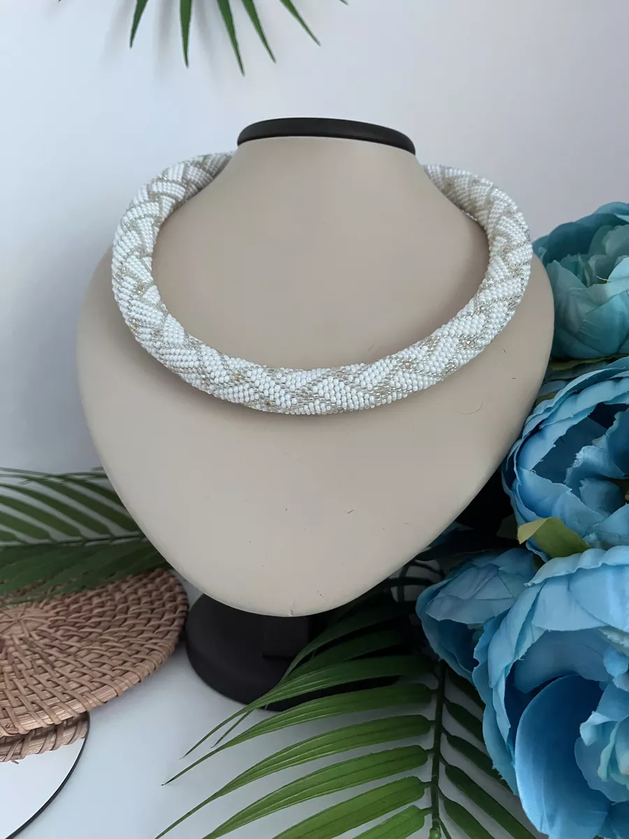 Изысканное украшение для неповторимой тебя. Такое колье не оставит равнодушным ни тебя, ни других вокруг. Подойдет под дресс код на работе или украсит твой вечерний образ. Будет невесомым дополнением на шее и восхищенные взгляды обеспечены. Жгут прочный, эластичный, приятный на ощупь, удобная застежка. Жгут из бисера подойдет и к повседневной одежде и к вечернему наряду, украшение легкое и совсем не чувствуется на шее.